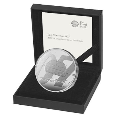 2020イギリス ジェームズ・ボンド007『Pay Attention』1オンスプルーフ銀貨 専用ケース限定7007