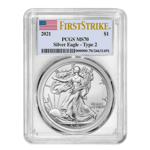【鑑定済】PCGS社最高グレードMS70 2021アメリカ イーグル銀貨(TYPE2) 1オンス スラブケース付