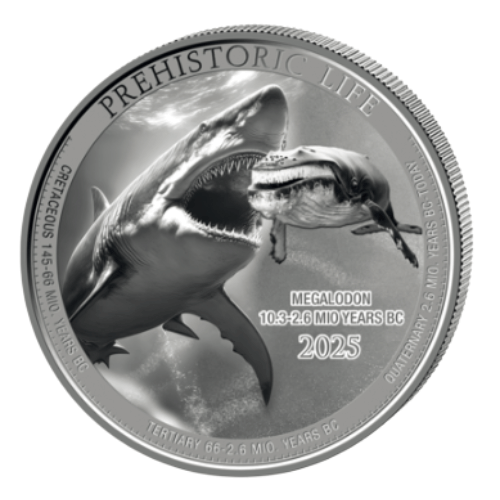 2025年 コンゴ 『メガロドン』 地金銀貨 1オンス クリアケース付