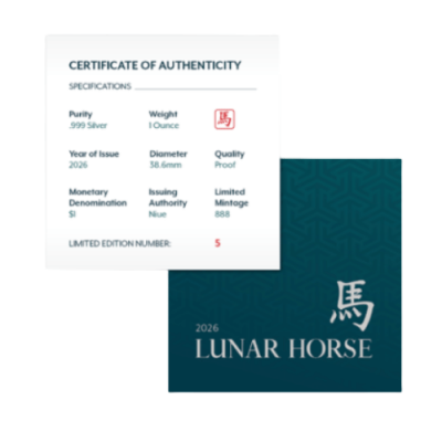 この銀貨は、中国の干支で7番目の動物である2026年の午年を記念するものです。