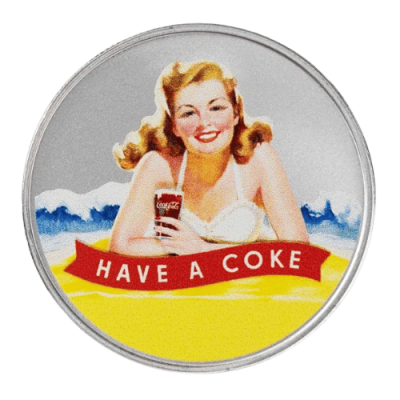 アメリカ コカ・コーラ『ブロンド 』 1オンス シルバーラウンド カラー ブリスターパック入