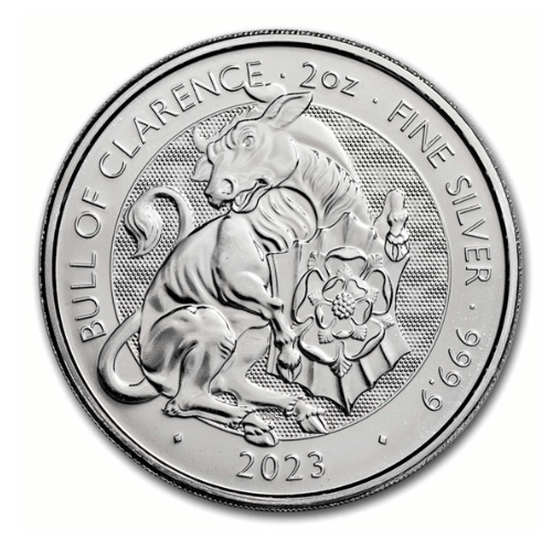 2023イギリス『チューダービースト クレランスの雄牛』2オンス 地金型銀貨 クリアケース付 新品
