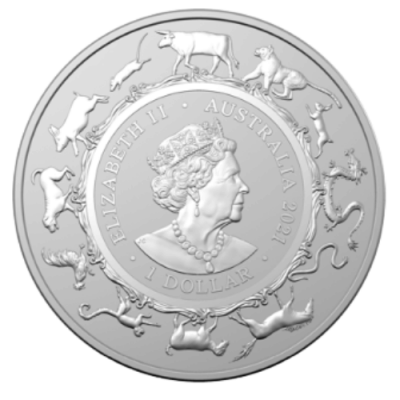 2021 オーストラリア干支『牛』地金型銀貨 1オンス クリアケース付 新品 限定50,000枚