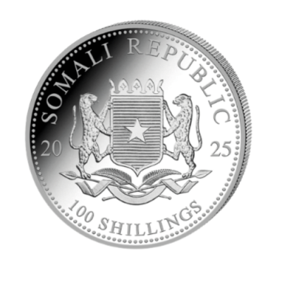 ソマリア国発行の エレファント銀貨は、1オンスの99.99%純銀です。