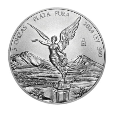 PCGS MS70 2024年 メキシコ リベルタード 地金型銀貨 5オンス 発行30日以内 クリアケース付