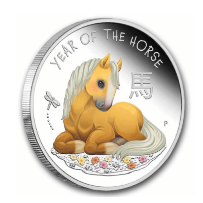 2026年の干支「午(Horse)」をテーマにした、、カラー仕上げの1/2オンス純銀コイン(99.99%)が登場。